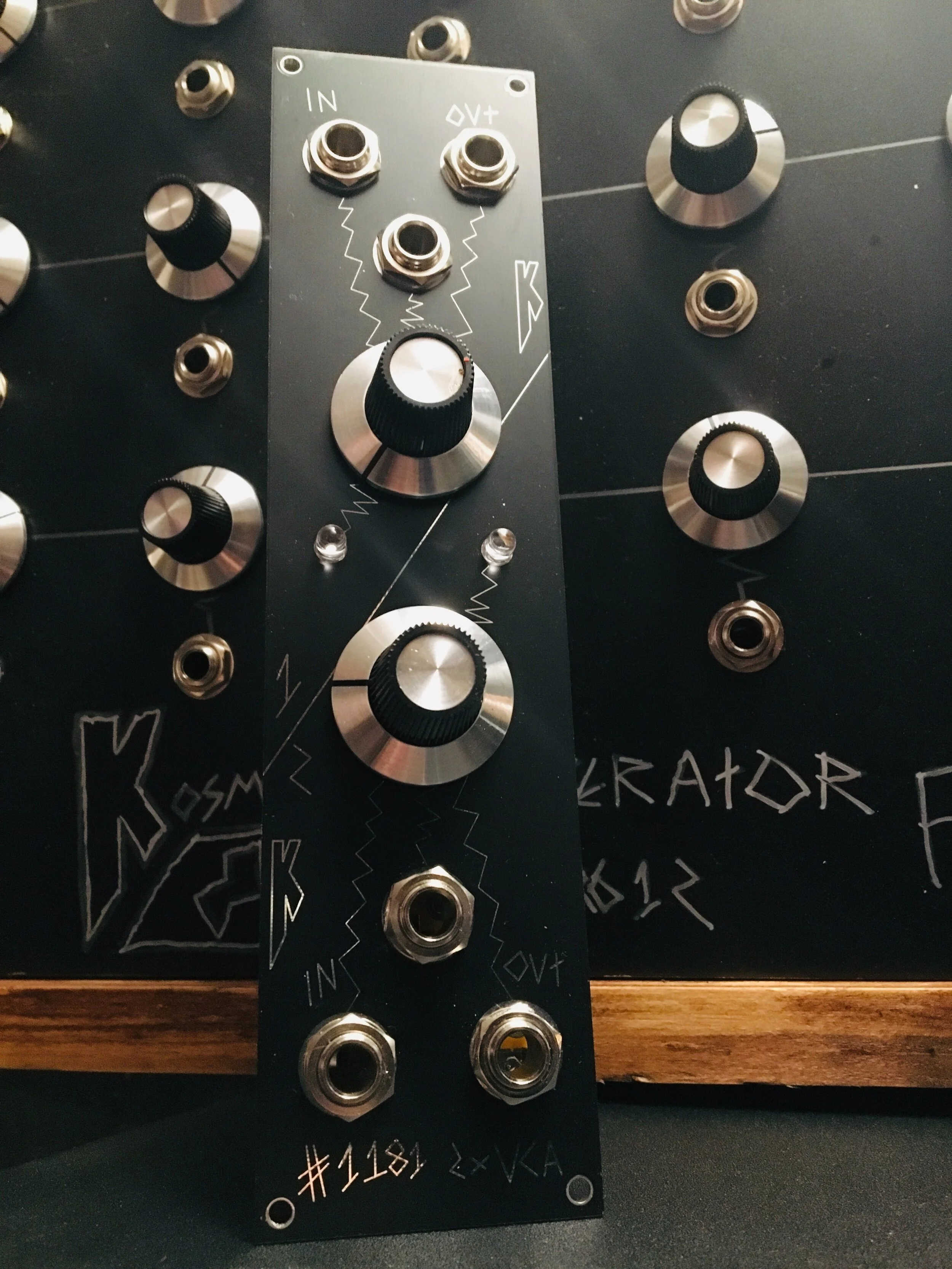 Both VCA’s are exactly the same. with an in, an out, a CV input plus a Positive offset knob. The Effect The Voltage has on the VCA is shown with the LED. its great for your standard VCA. a ducking module, or whatever really! check out the 1183/1184 Quad VCA mixer for a VCA set that is in a slightly different orientation.