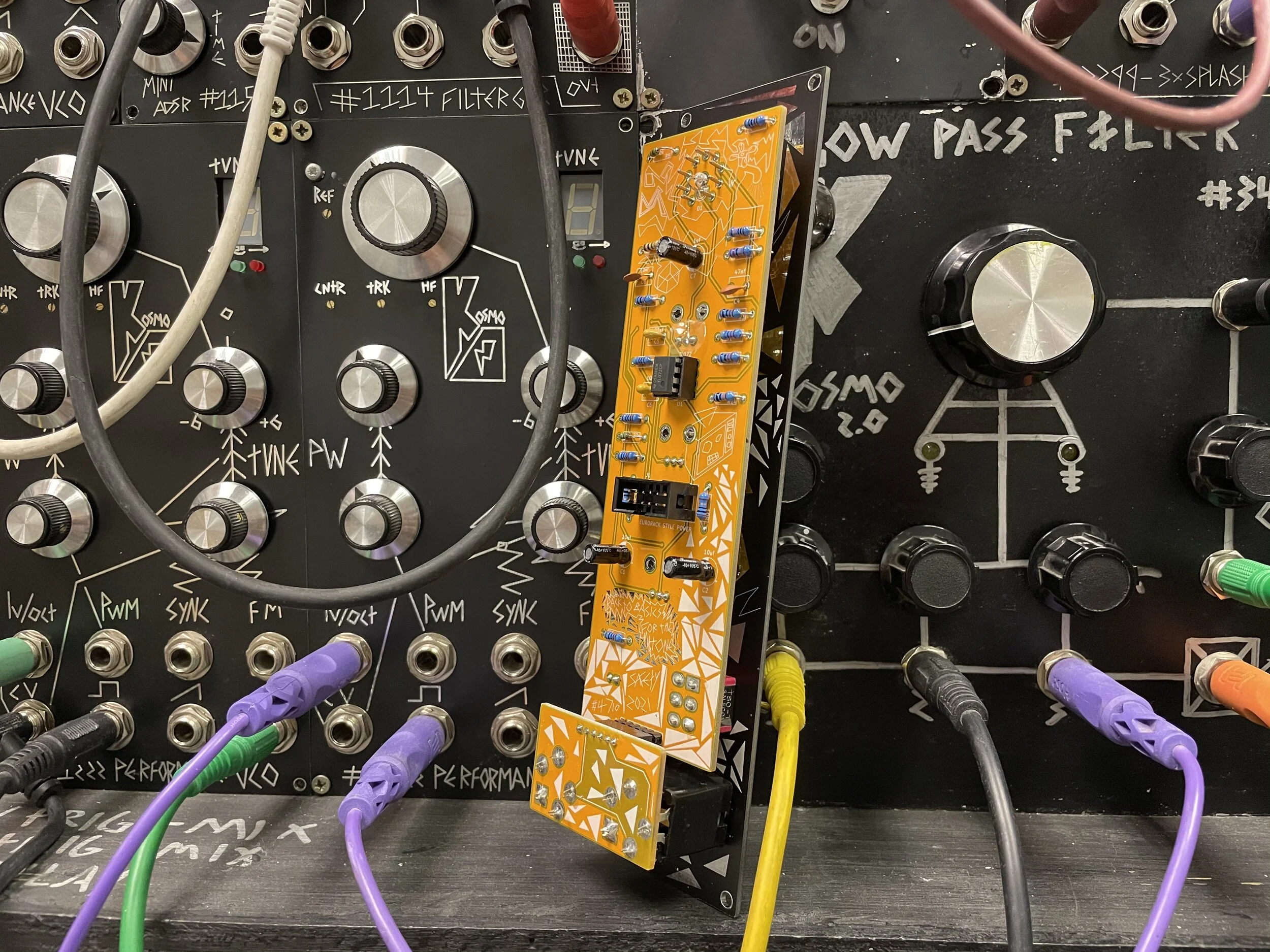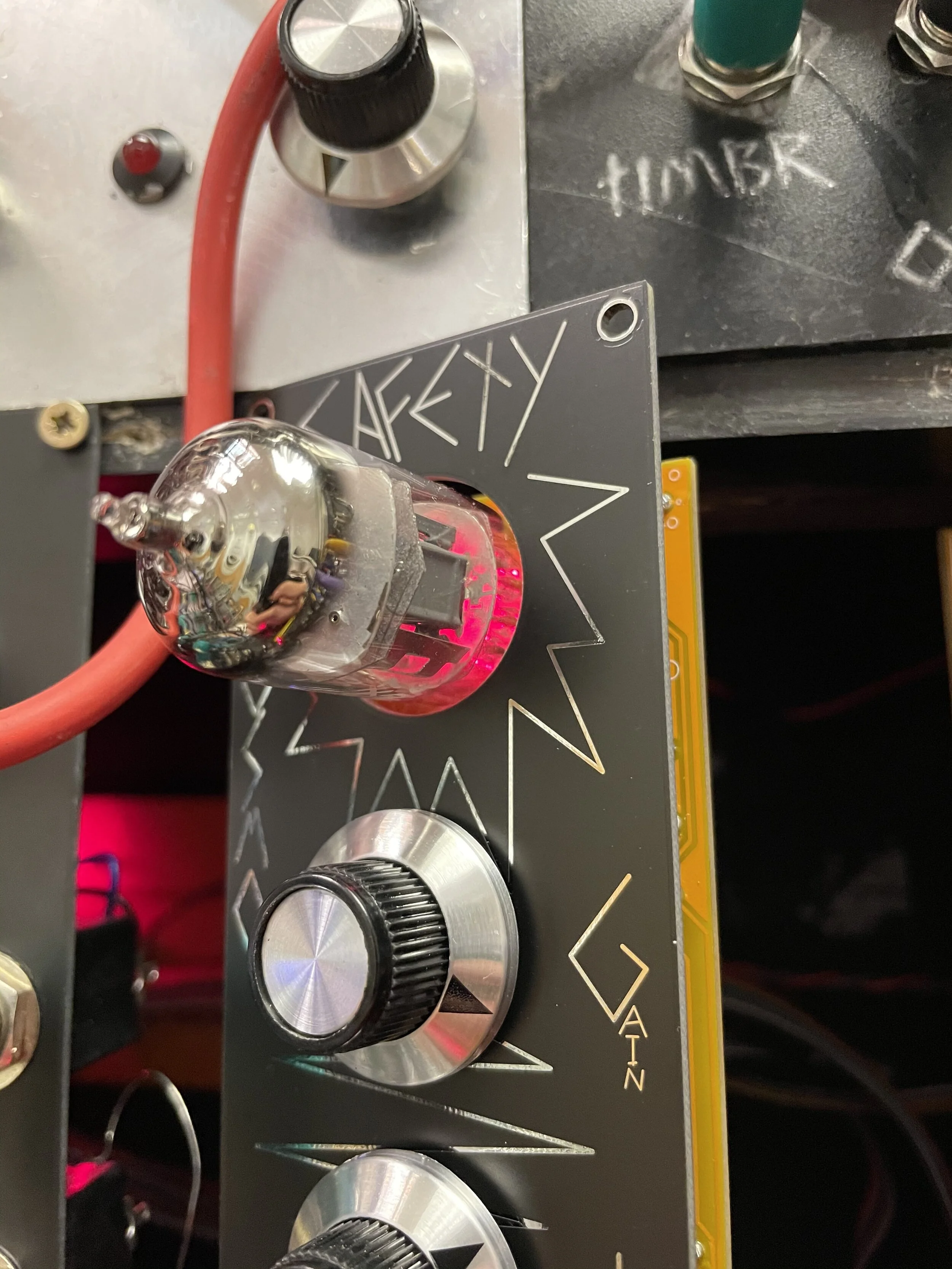 It does not have any CV control this is for the above reason and also namely, with valve distortion the sound adjustments are more to do with the level of things going into it, so i didn’t see it as being particularly important to complicate the circuit further just to add CV control over things that don’t do as good of a job as adjusting things earlier in the signal chain. The best approach is to treat it like a pedal, it has a switch to turn it on, it accentuates aspects of the sound in a warm waffly kind of manner, and can boost the signal a heck of alot!