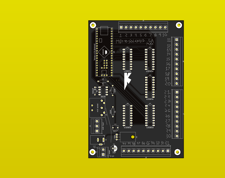 Here are the gerber fiules for the organ midi interface circuit board, it can also be used to control small solenoids!!! for something liike a midi glockenspiel or something. also is a dodgy bit of code which you will be able to modify.