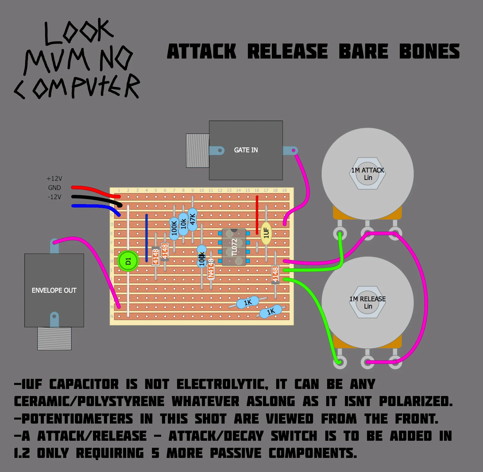 Very cut down envelope generator, down to the bare bones. but still extremely useful! ADSR’s are overrated! the best method for envelope generation is the simplest, and i think the one with the ability to change the release to a decay (bottom image) is all you really need to get going.