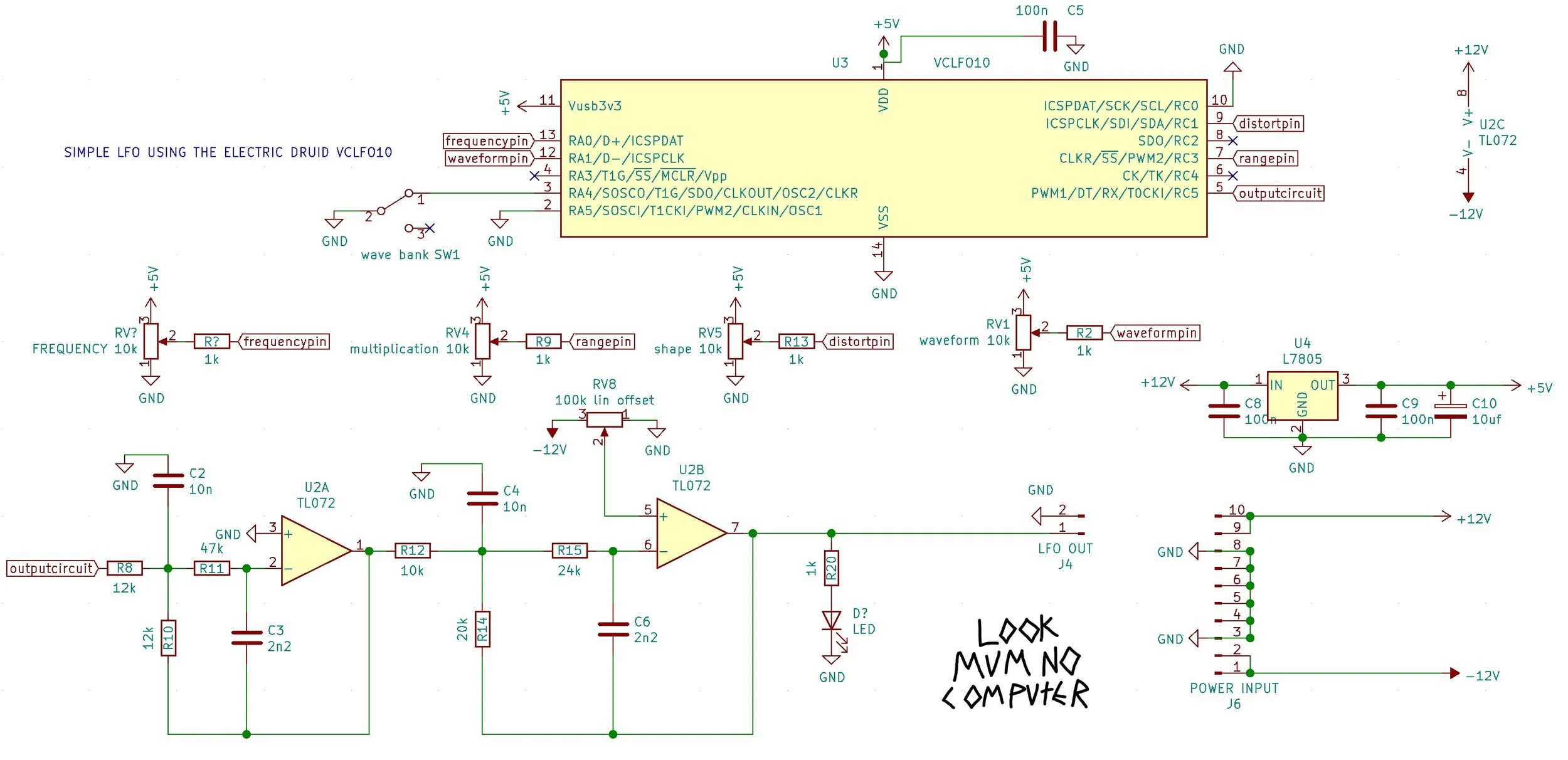 The actual module is largely based on the datasheet schematic on the electric druid site, with added outputs and some functions prioritised over others.